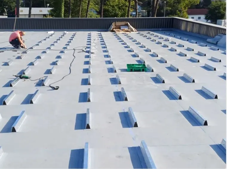 GD Etanchéité a mis en place des plots pour panneaux photovoltaïques sur une toiture terrasse à Benesse Maremne, dans le Sud des Landes.
