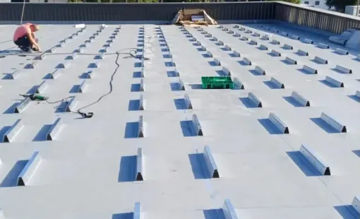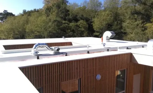 GD Etanchéité a procédé à la réalisation de l'étanchéité d'un toit plat par membrane PVC Cool Roof. Cette prestation donne à cette toiture une belle luminosité.
